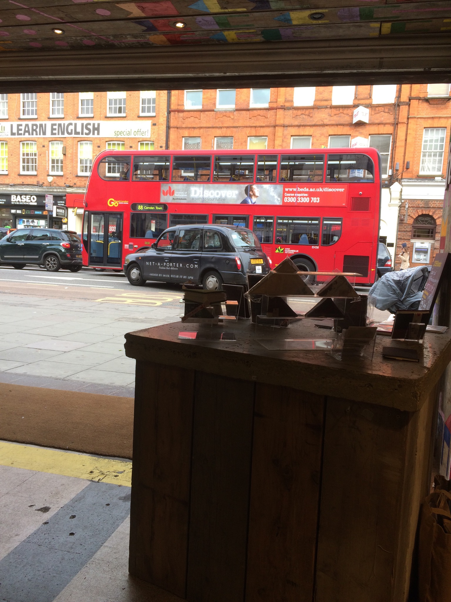 Camden High Street is a pictorial. There is so much going on and it tells a very interesting story. You just sit and try not to glut on the view. It’s the 3rd day of the exhibition and instead of burying my head in a book, I am feasting my eyes. Hard to decide if I am exhibiting artwork or visiting The Camden High Street exhibition! Whichever way, this is brilliant!