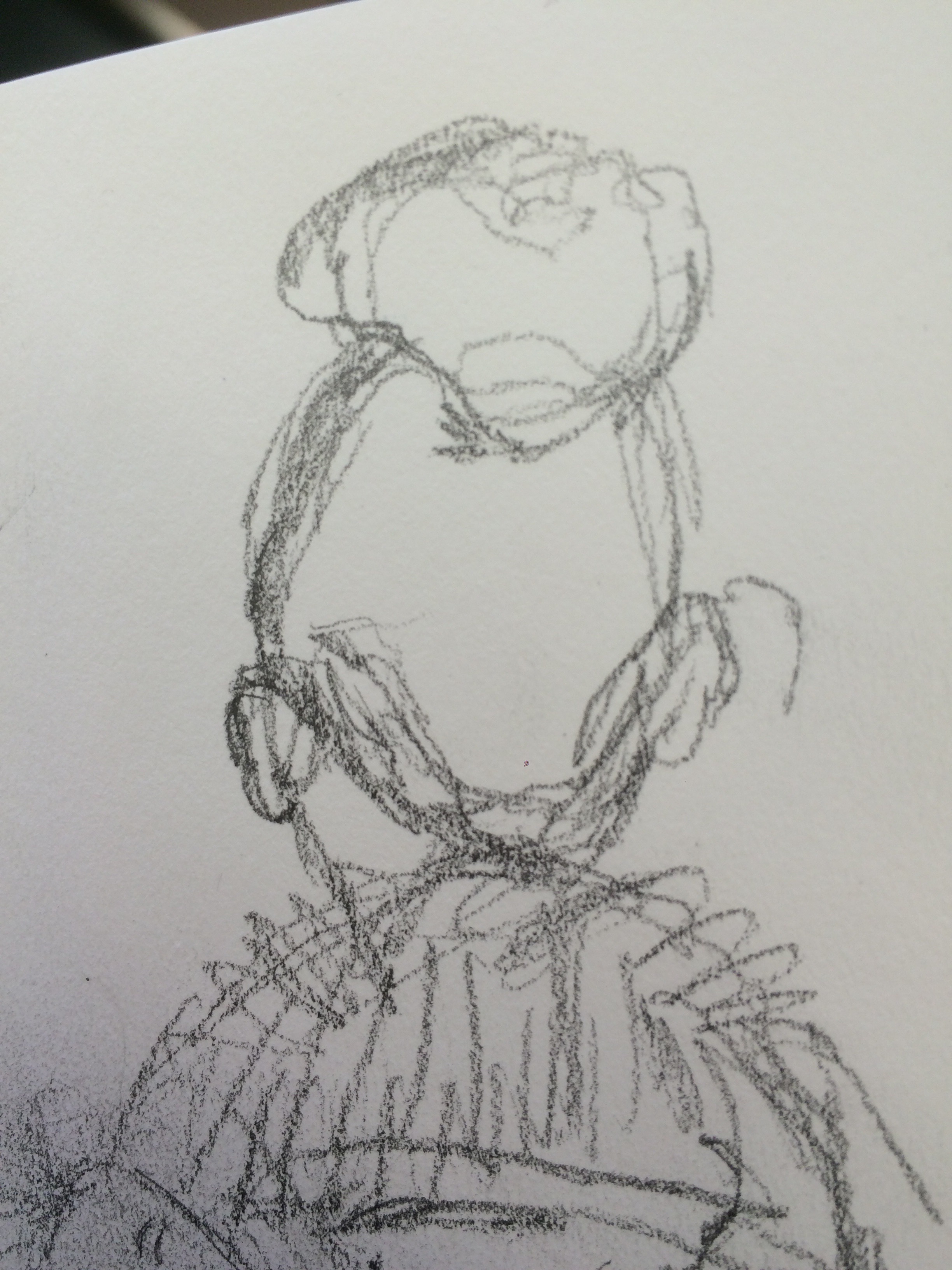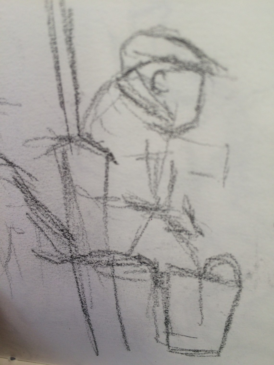 My new pastime is sketching people. However, recently I’m encountering ‘glitches’. For obvious reasons, if you keep glancing at someone, they wonder why you keep looking at them. So now, I’m basically sketching on the ‘sly’ which can be frustrating! Can you imagine asking permission before you randomly sketch someone? What’s that about? It’s not like I’m going to give the person the sketch afterwards. Neither am I going to sell it. I’m basically making studies for my own improvement. It’s like reading a book I guess. And people are so much fun to sketch!!! But it is so tricky to sketch people without causing offence. I mean, just the other day, I tried sketching someone’s bike. Ooooo the ‘evils’ I got..I had to desist immediately!!!!