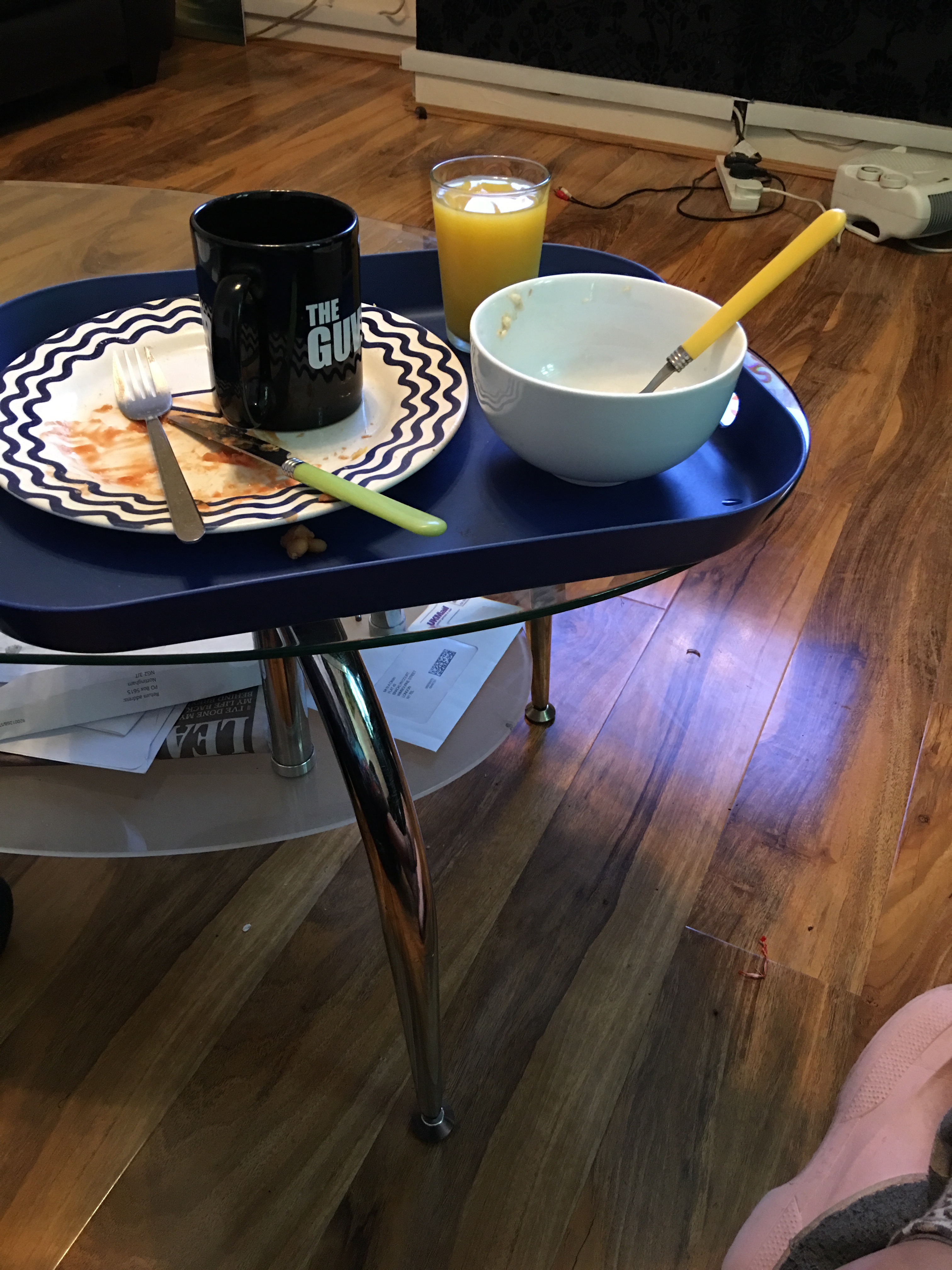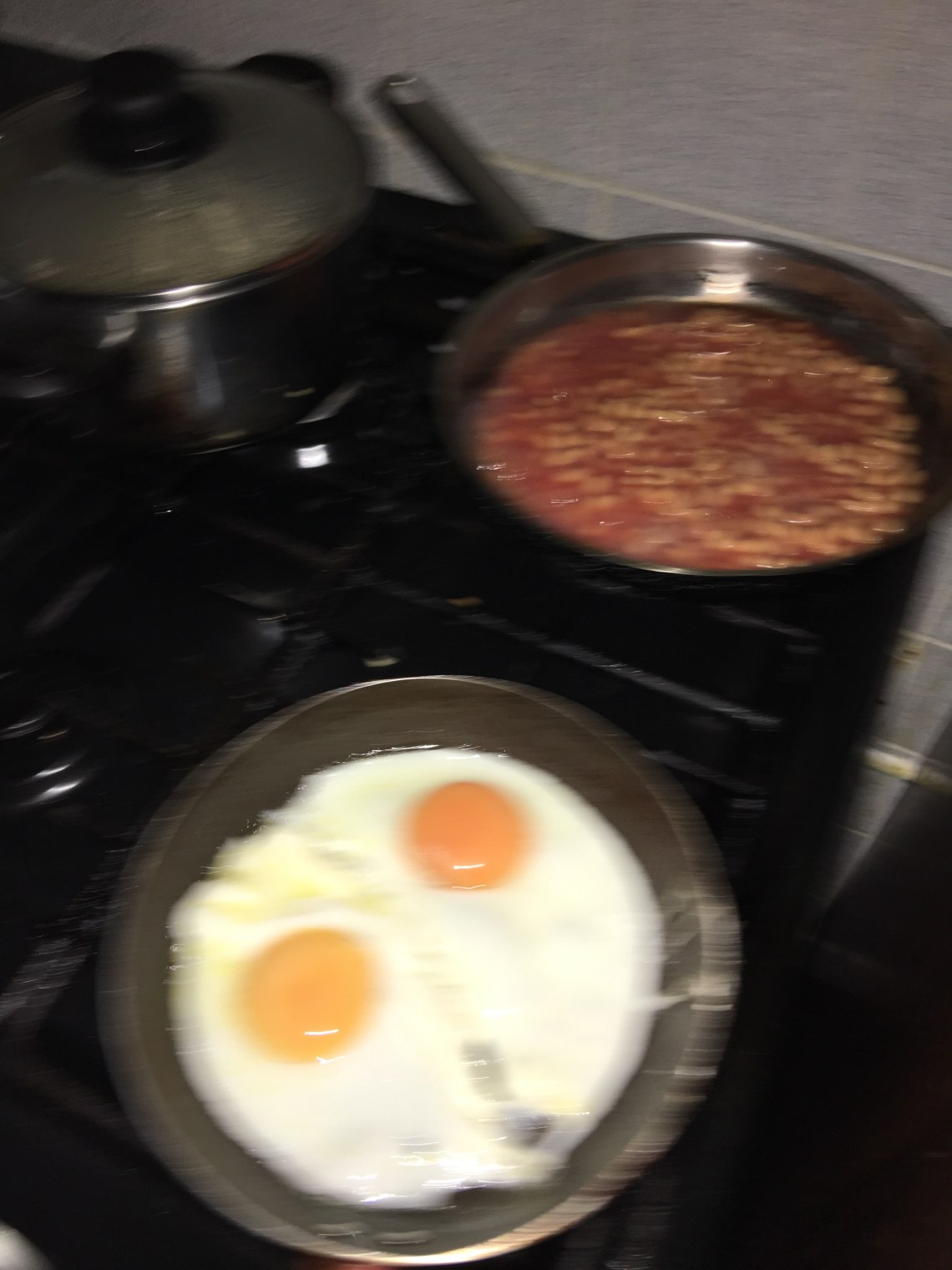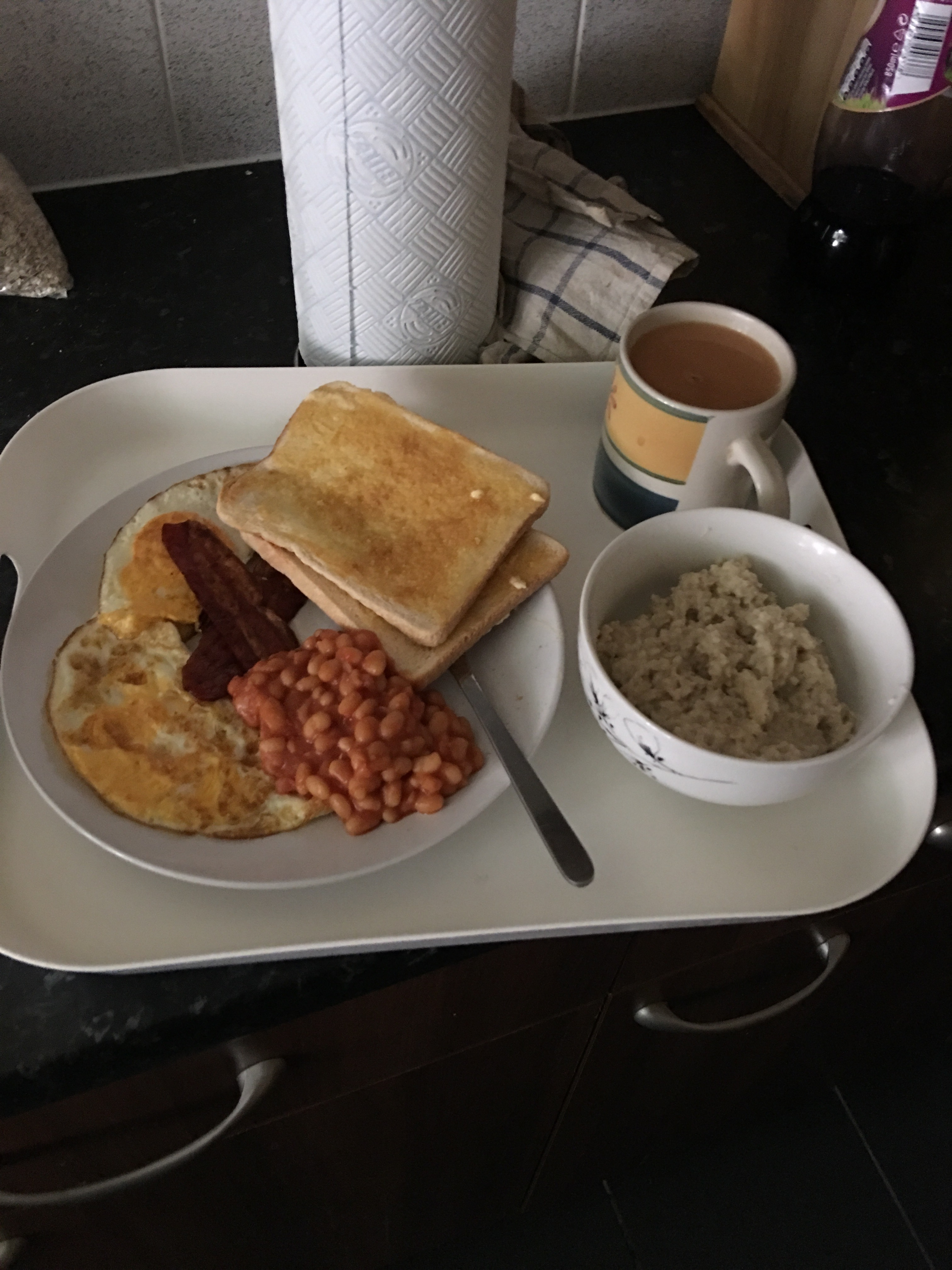 But I was pleasantly surprised…it was a lot! (for me it was….didn’t look like a lot at the time –actually it did). Turkey rashers, baked beans, oats, toast, eggs, tea, juice!!!…come on, seriously? So we took turns getting brekkie ready…