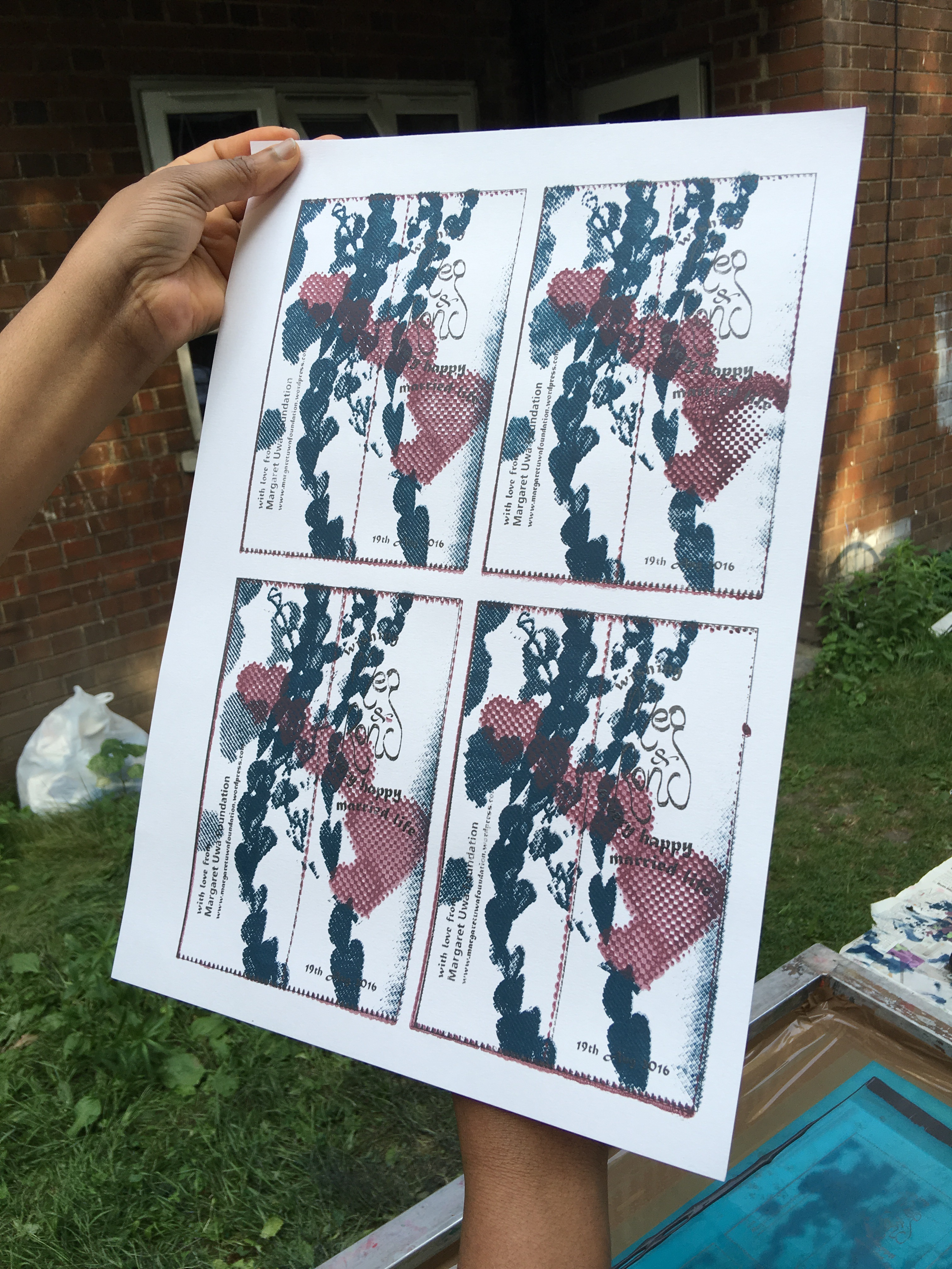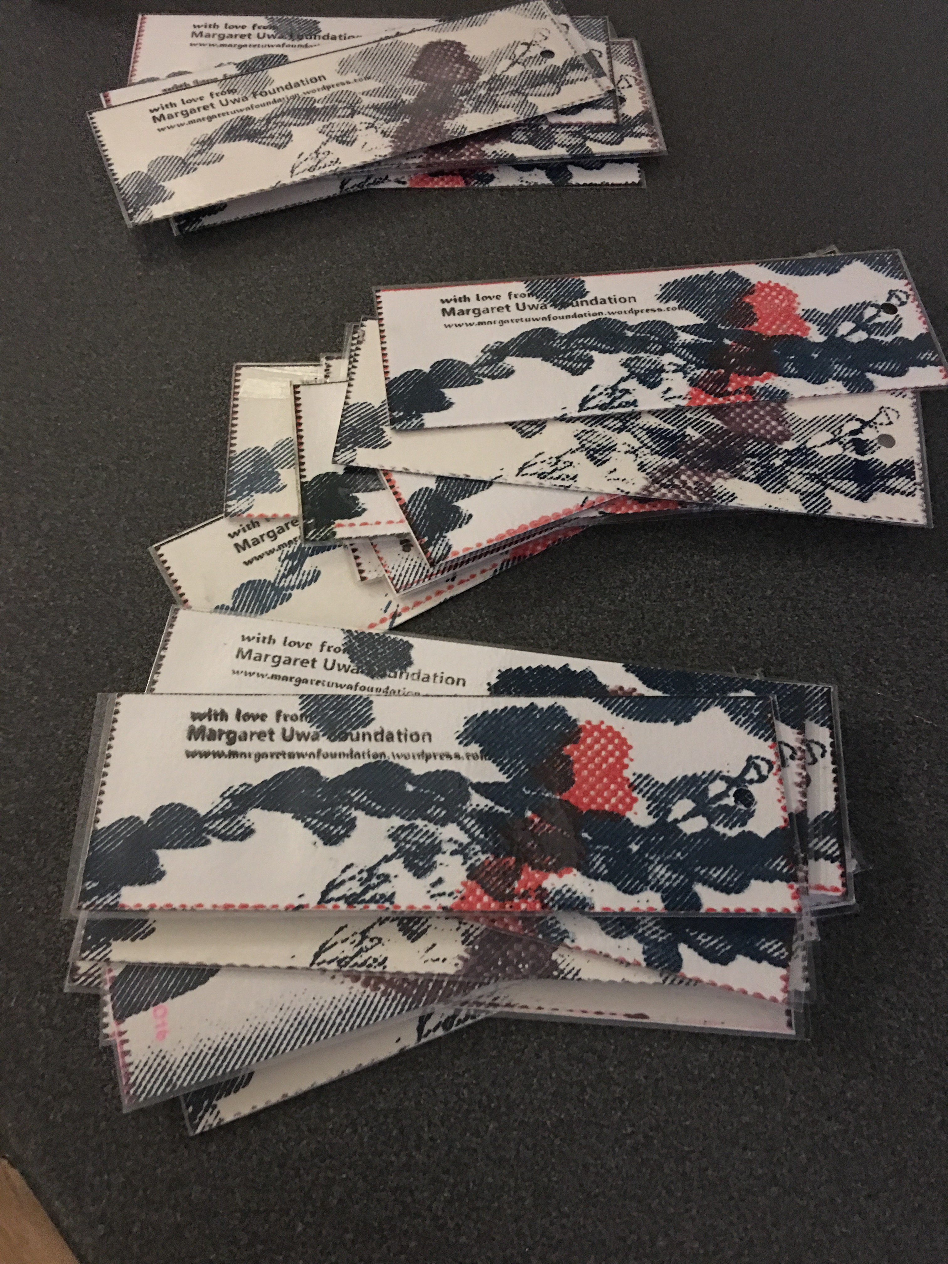 It was for a wedding. 200 screenprinted, laminated and ribboned bookmarks!!! Glad i did it but should have costed it properly. Learning curve!
