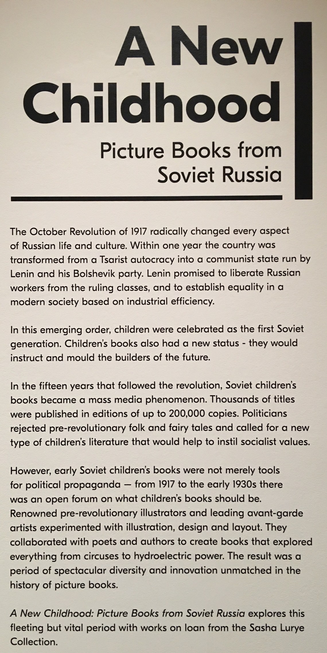 I decided to go see this exhibition as an afterthought…it was a toss up between Alex Katz and Soviet Russian illustrators…I chose Soviet Russian art purely based on the fact that it wouldn’t take too long to get there (journey time)…I was expecting a lot of Dadaism and political spiel as well as the fact that I would see amazing picture books…I love picture books! This exhibition has whet my appetite for more…I need to know more about lithography!!!!