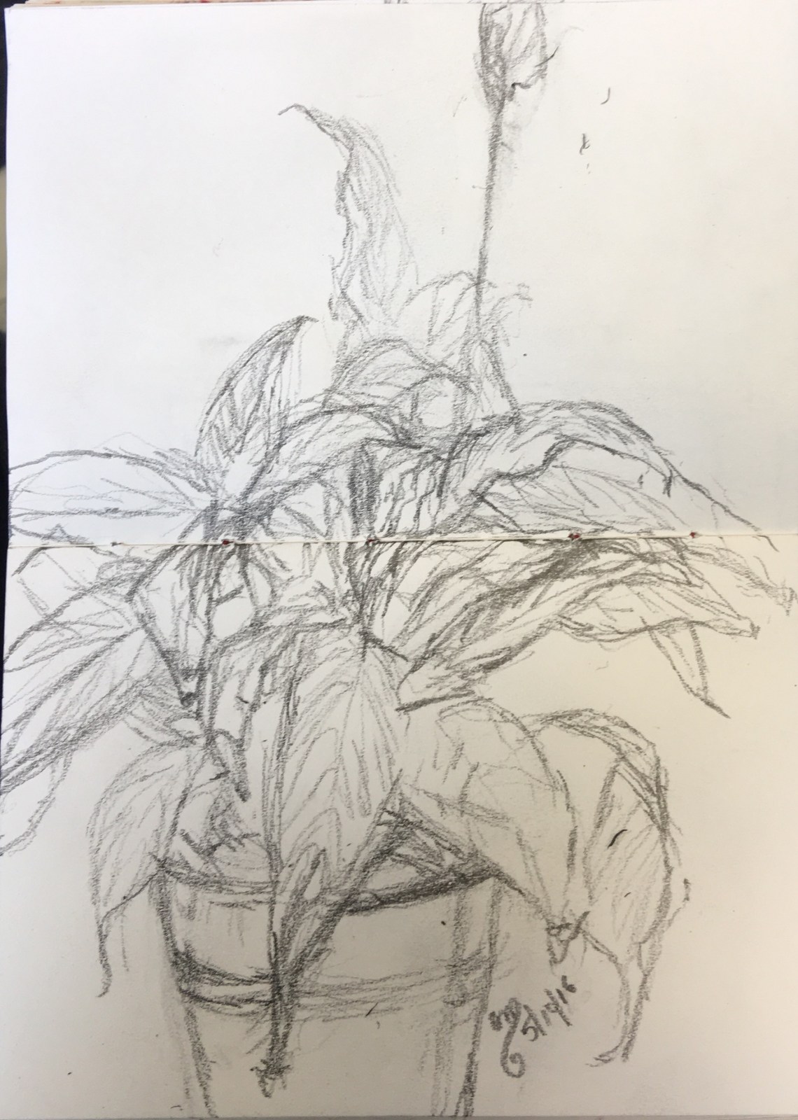 Just sitting in a staffroom drawing potted plants! What a day!!! I could have been in the studio! Hmmm!  I had even just about started on another sketch when I decided enough was enough and called the Agency to complain. A lovely lady explained that it often happens, teachers get booked to come in to a school only for the ‘absent’ teacher who works for the school to turn up. So basically sitting in the staffroom ensures I get paid for turning up. Good for them! Waiting for the pay slip!