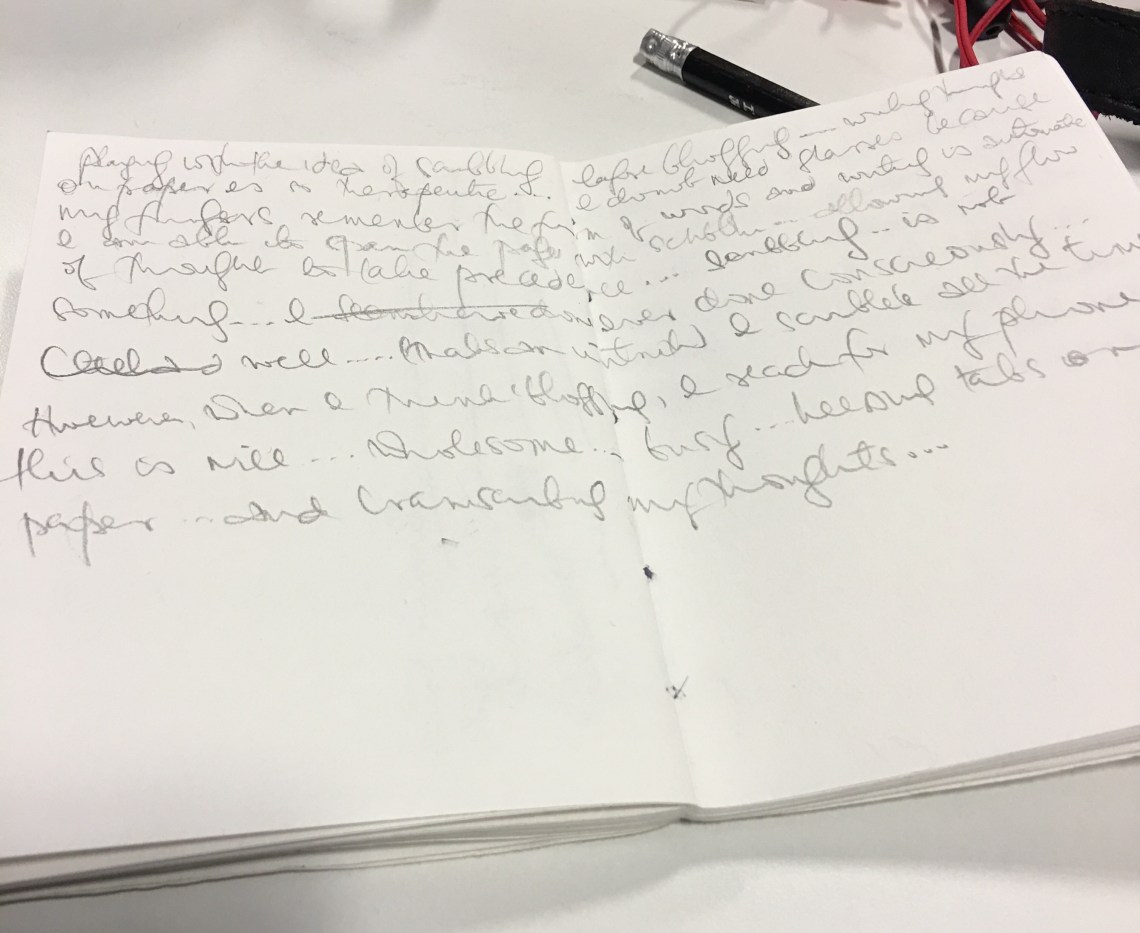 Playing with the idea of scribbling before blogging…writing thoughts on paper is so therapeutic…I don’t need glasses because my fingers remember the form of words and writing is automatic. I am able to span the page with scribble…allowing my flow of thought to take precedence. Scribbling is not something I have ever done consciously…well, that is an untruth…I scribble all the time. However when I think ‘blogging’ I reach for my phone…this is nice…wholesome…busy…(yet not)…keeping tabs on paper…and transcribing my thoughts…reminiscent of ‘the morning pages’ which I never did cos I couldn’t see the relevance but I can now. Scribbling definitely lets it all out!