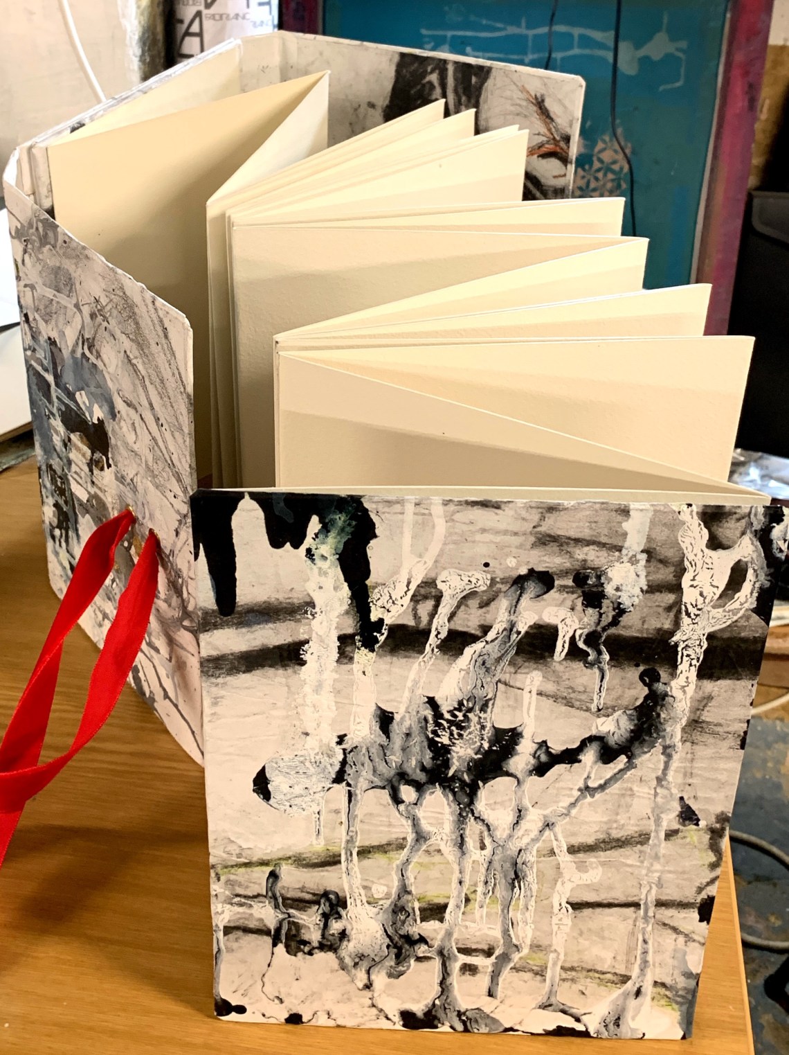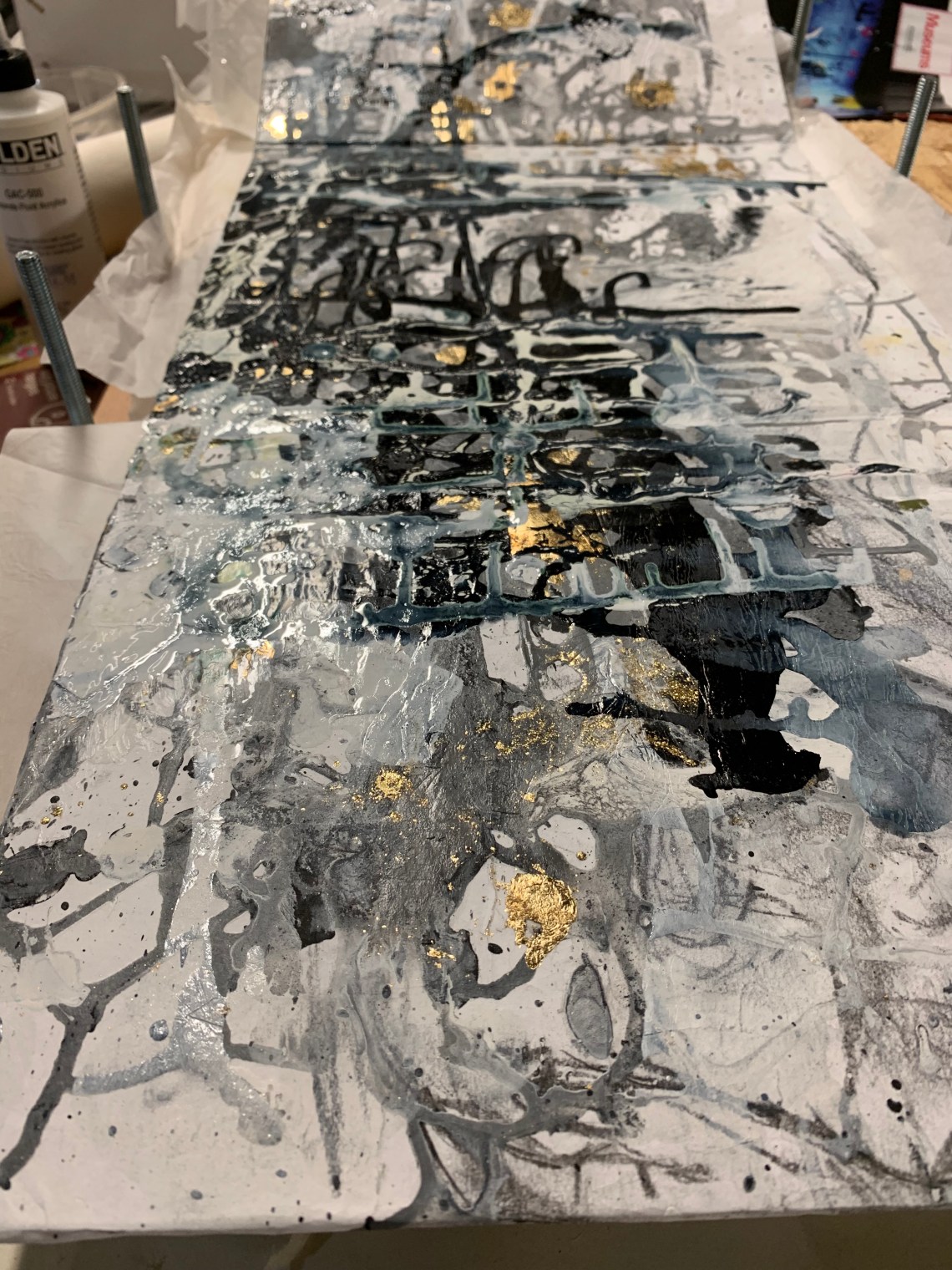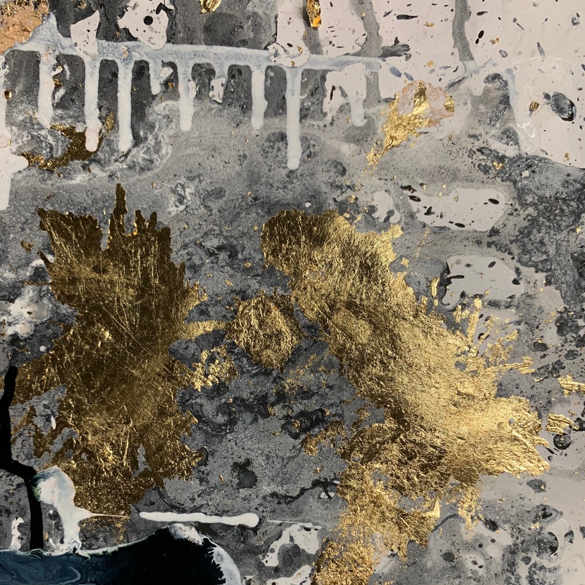 Cover – acrylic and gesso over gold leaf (work in progress)