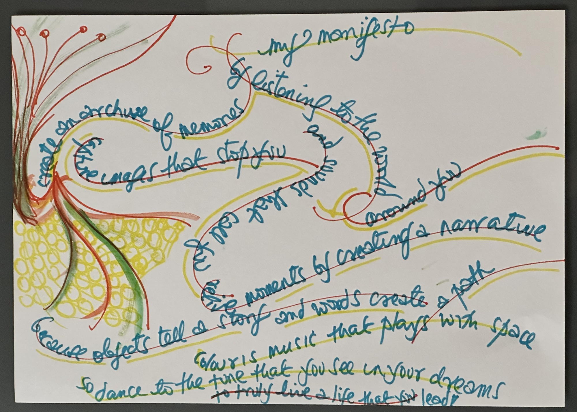 ….as part of my MA Fine Art I had to create a ‘manifesto’. Always assumed ‘artists statements’ were something me kind of goal posts but (how wrong was I?). I absolutely love the manifesto I wrote for myself….going to do my utmost to honour it (till I don’t…not)….going to make it my vision board to work to always!